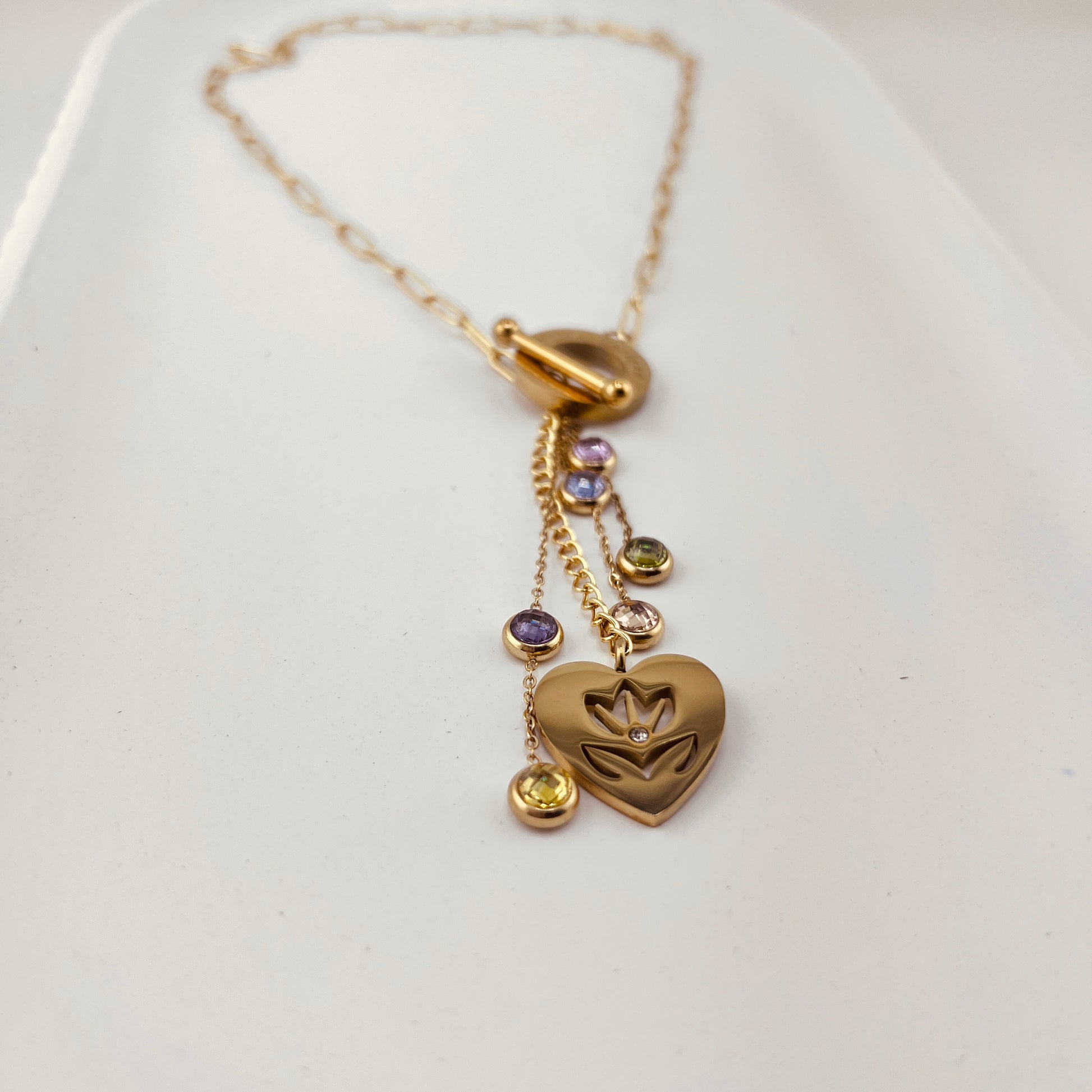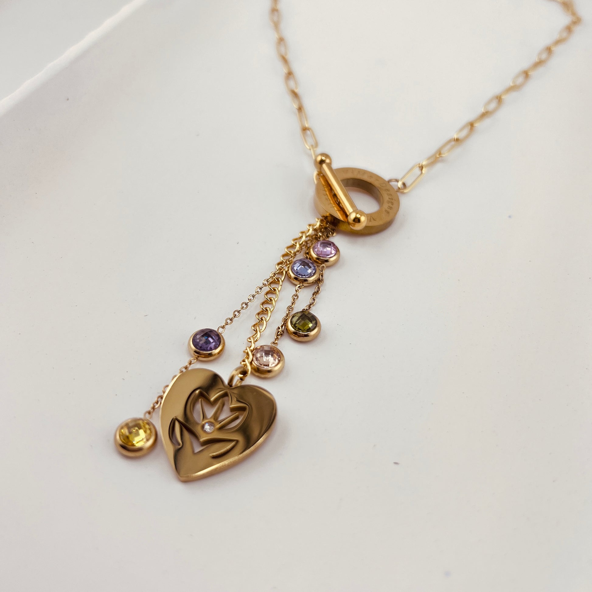 Stunning Paperclip necklace with crystals and our Signature Heart. 17" Stainless Steel/Gold Plated