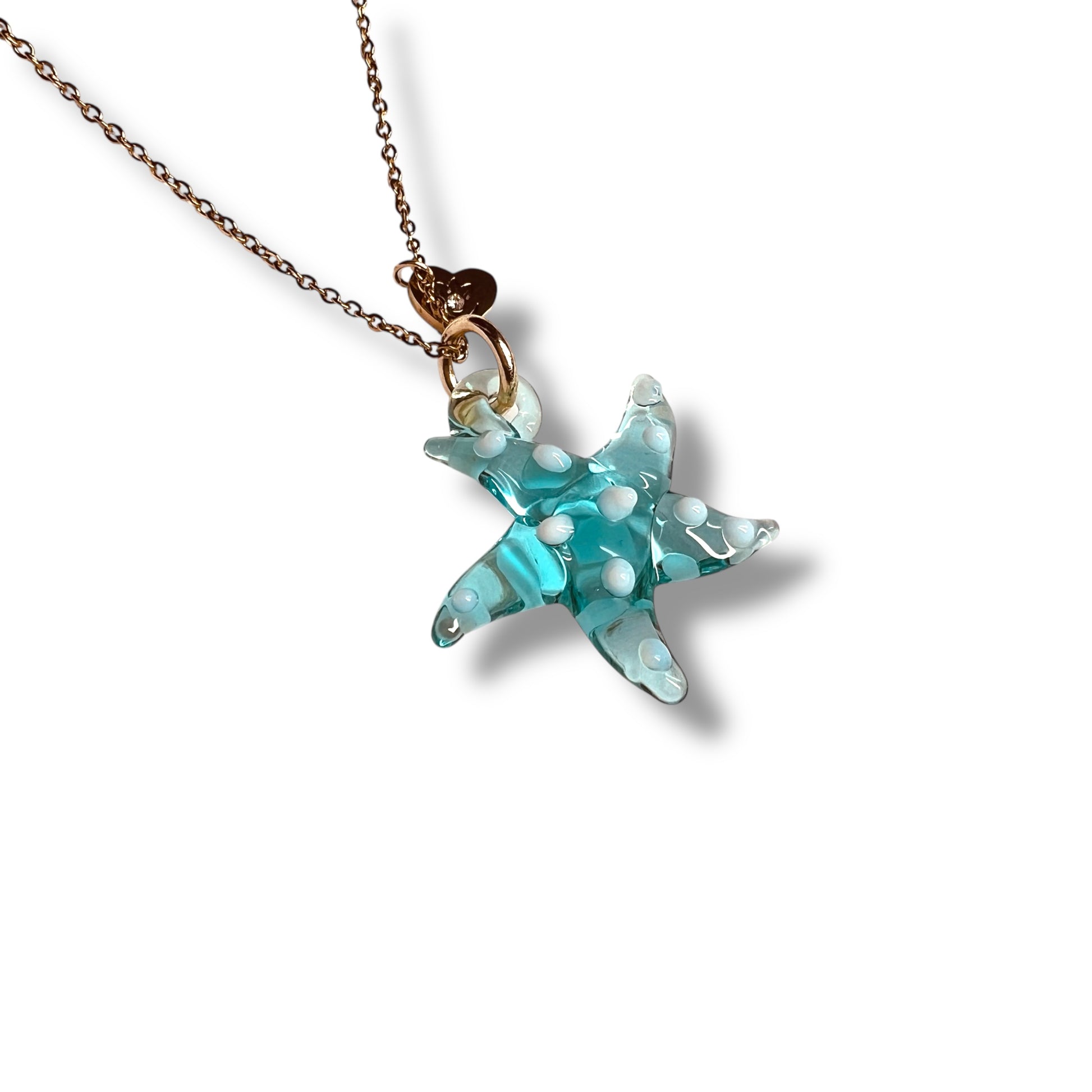 Delicado y veraniega cadenita con estrella en lampwork para brillar en este verano. Stainless Steel/Gold Plated/ 18"