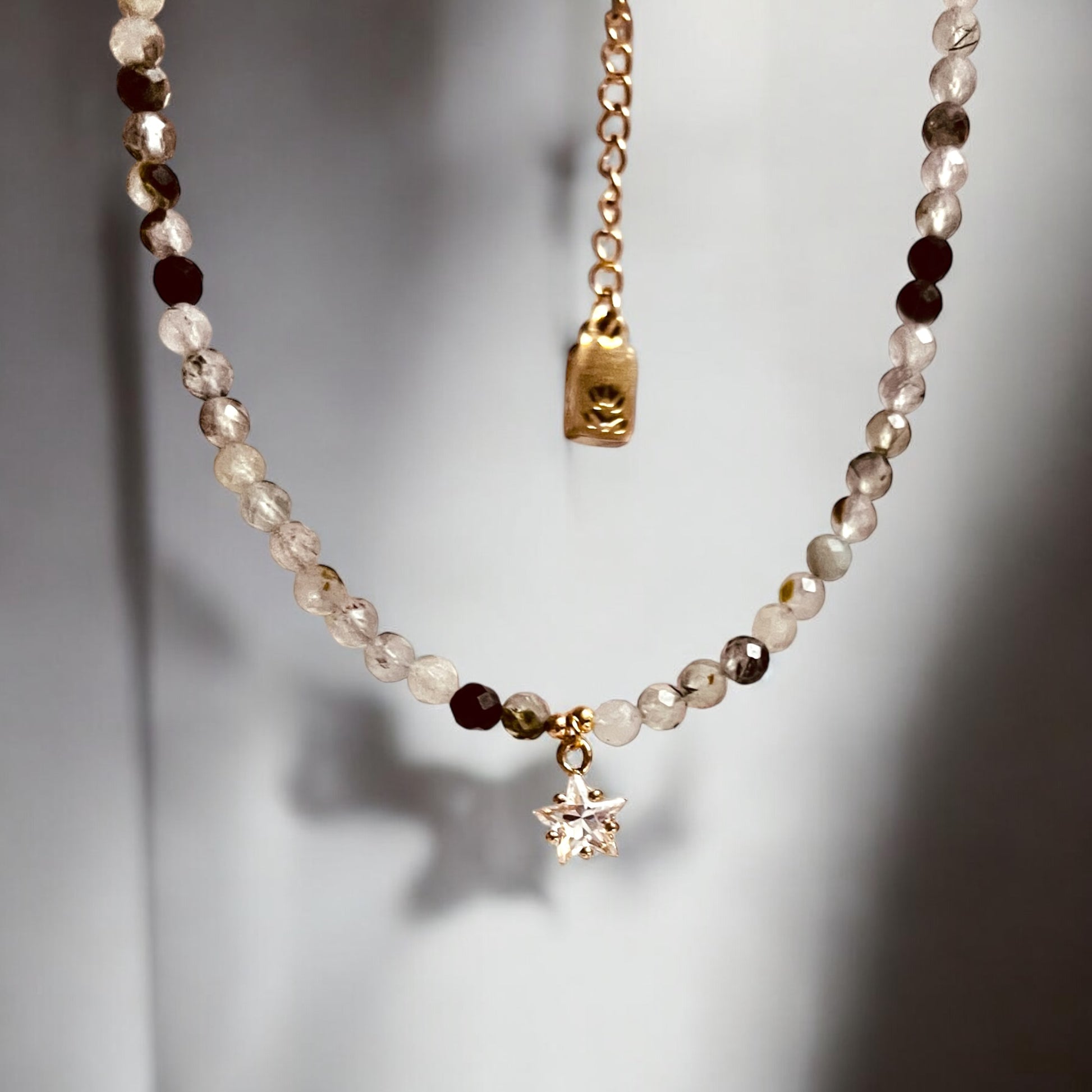 Beautiful chocker with Phrenite stones with a beautiful crystal star.