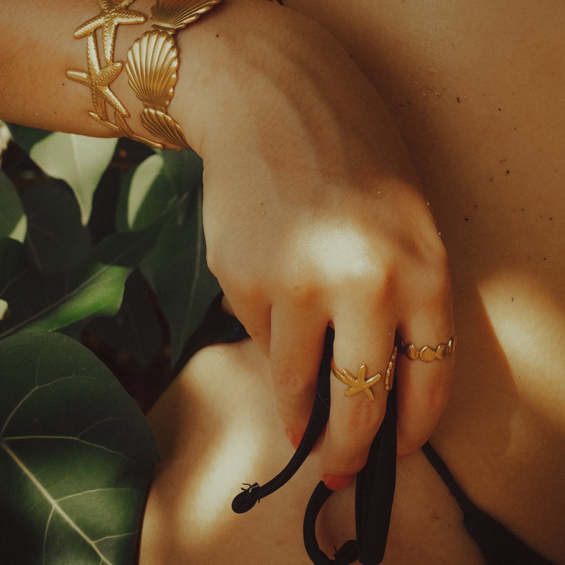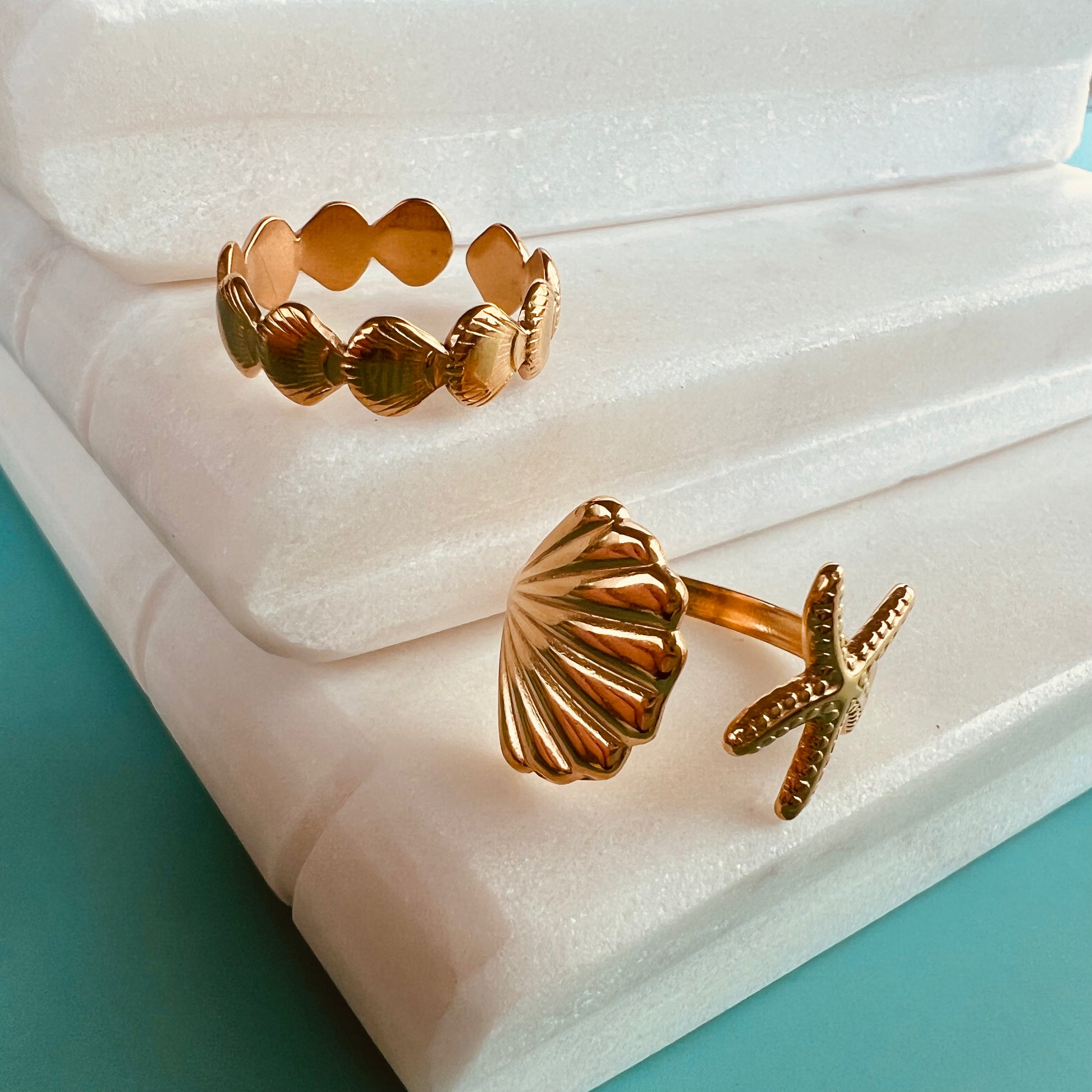 Hermoso set de sortijas en stainless steel y enchapadas en oro.