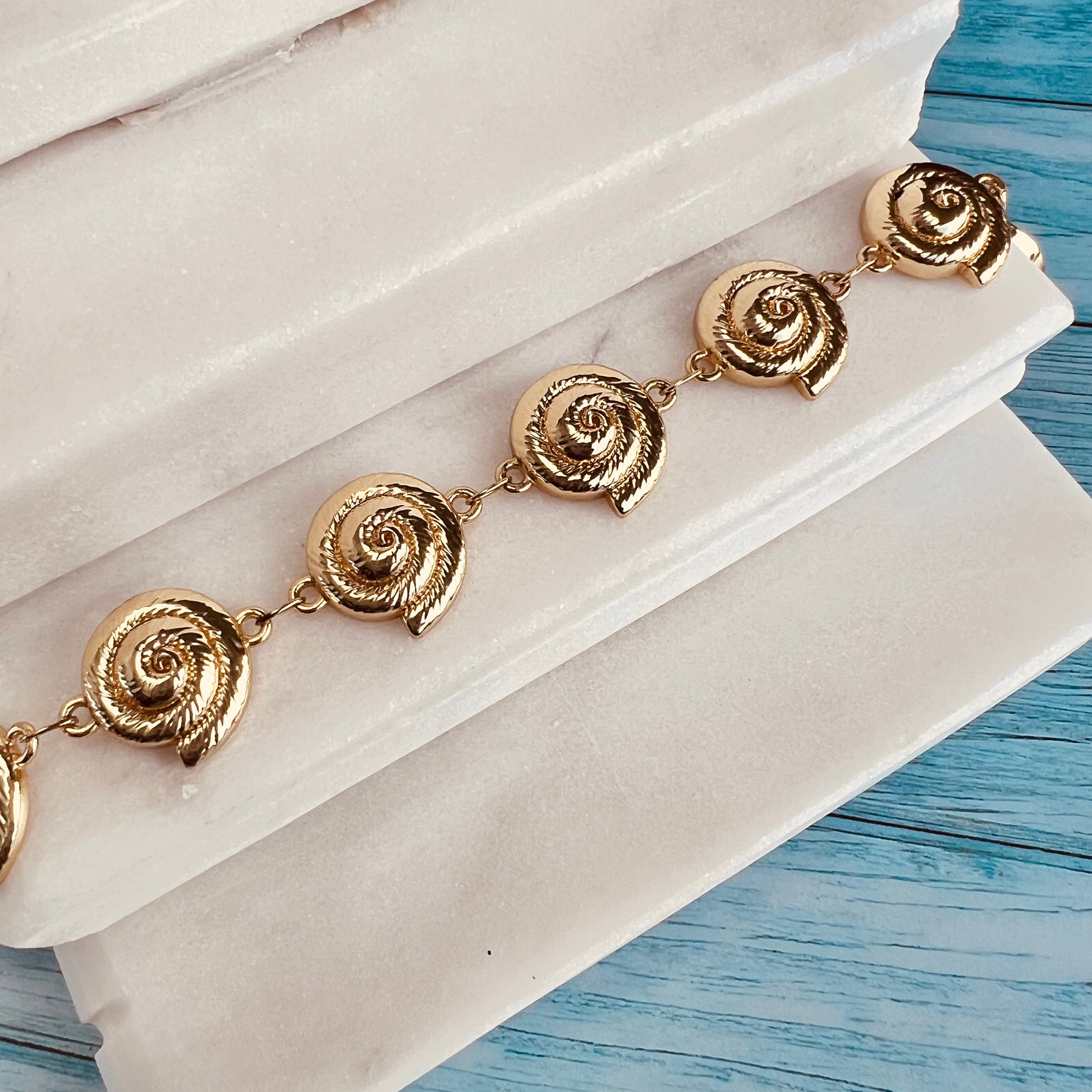 Pulsera de conchas con cierre. Baño en oro