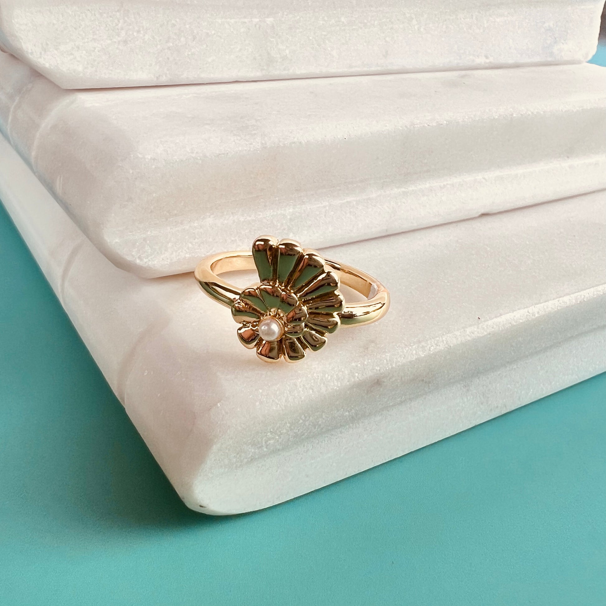 Sortija enchapada en oro, con perlita, ajustable